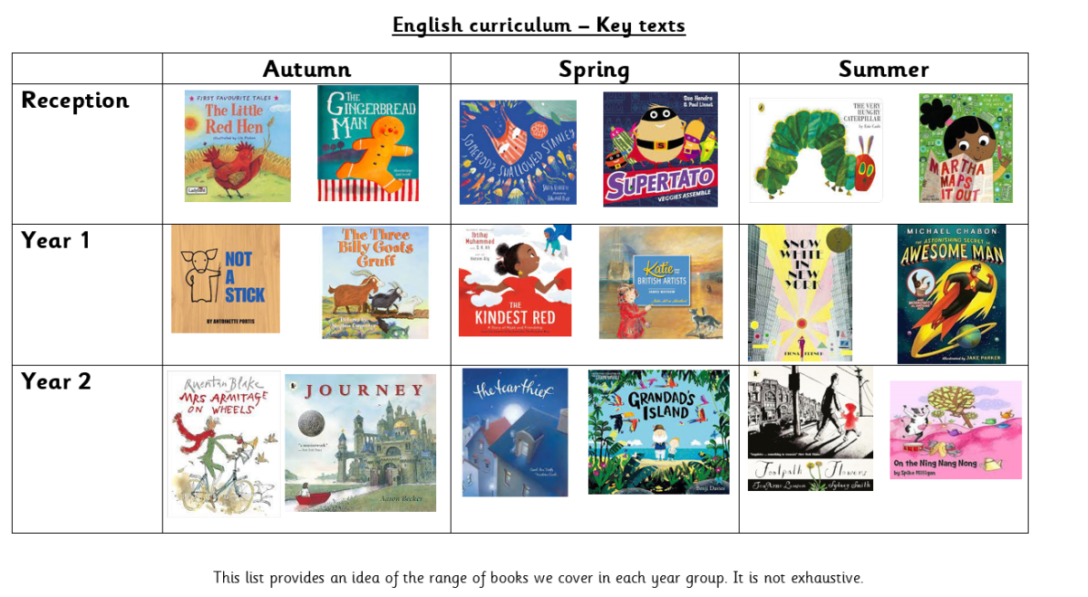 Pupils’ gain cultural capital through the carefully crafted choice of texts used, the exposure to a range of genres, authors and novels allows for pupils to read often and widely and provide a stimulus and high-quality model to inspire pupils to have future aspirations as writers.
